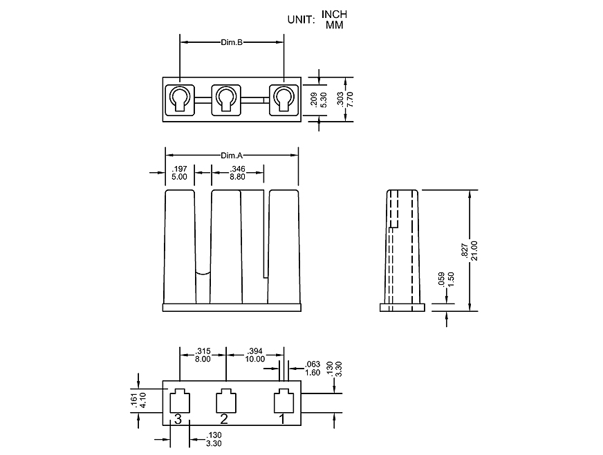 * Mates with .093"[2.36mm] round wire pins [1888]