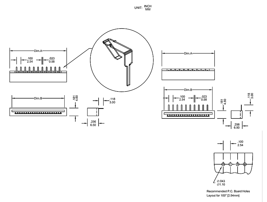 * Applicable FFCs: Pith/.100"[2.54]