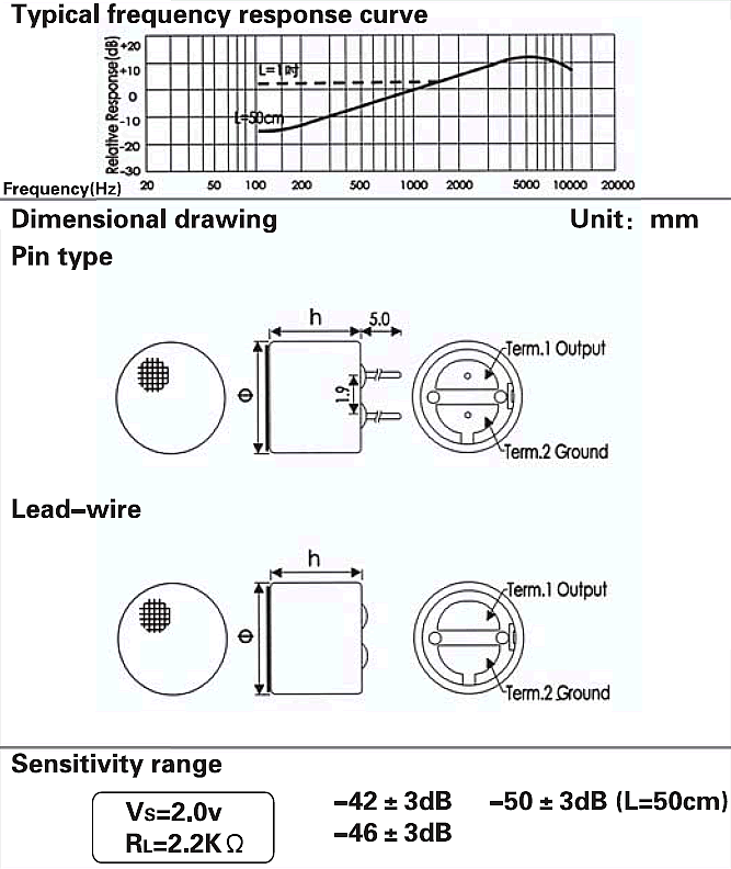 - Sensitivity: See above(0dB = 1v / Pa, 1kHz)