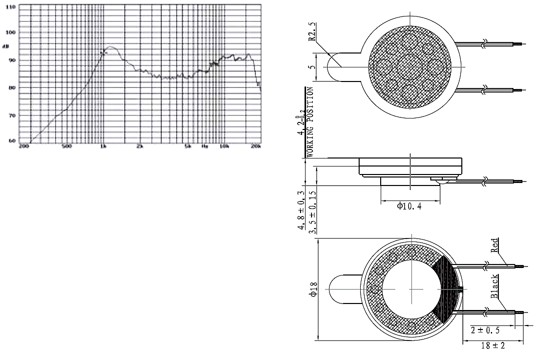 - SPL@0.8,1.0,1.2,1.5KHz (0.1W/0.1m): 90±3dB