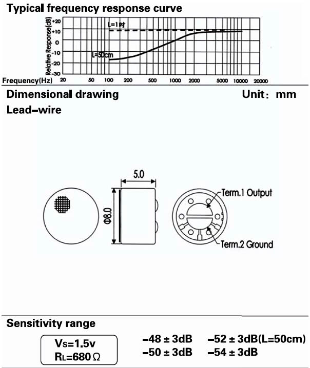- Sensitivity: See above(0dB = 1v / Pa, 1kHz)