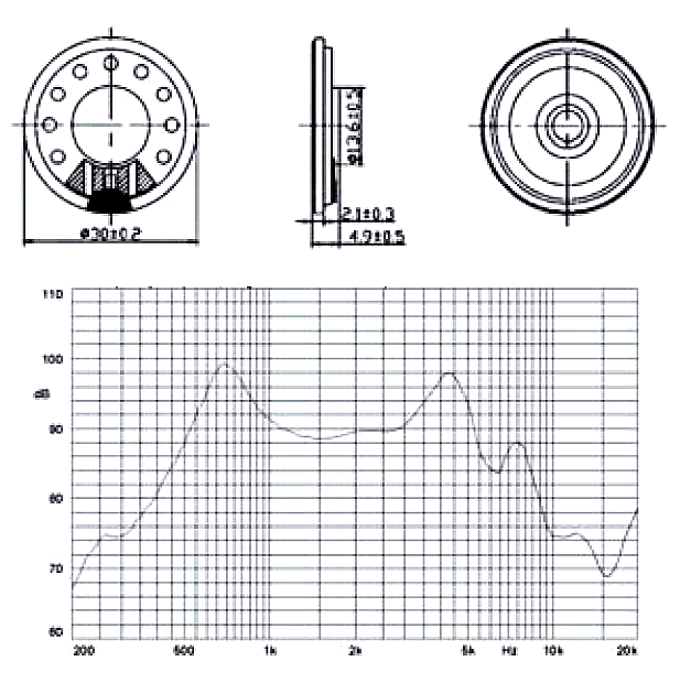 - 0.1W/0.1m (AVG at 0.8,1.0,1.2,1.5)KHz: 93±3