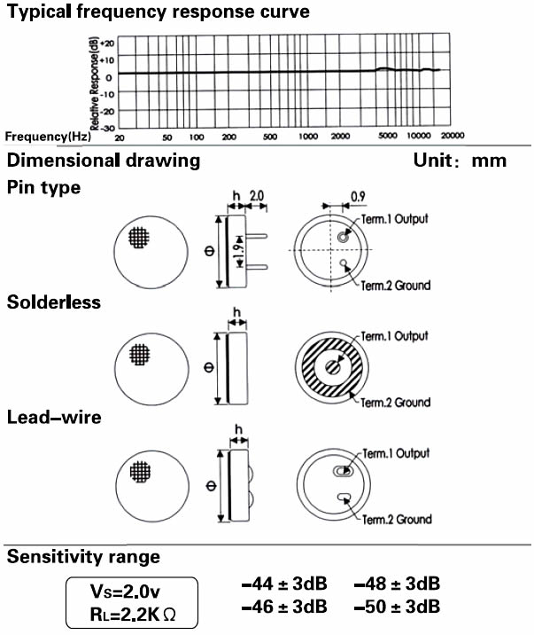 - Sensitivity: See above(0dB = 1v / Pa, 1kHz)