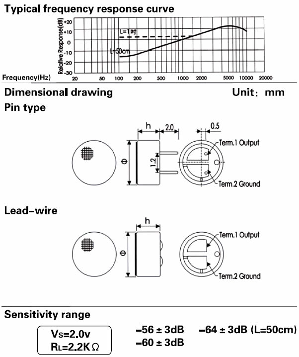 - Sensitivity: See above(0dB = 1v / Pa, 1kHz)