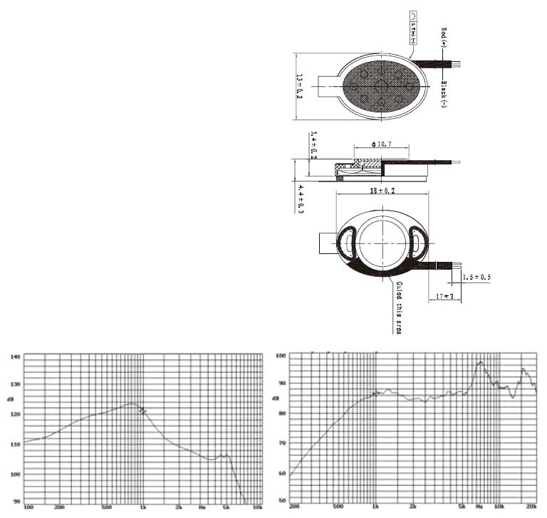 - SPL@0.8,1.0,1.2,1.5KHz(0.1W / 0.1m) : 87 ± 3dB
