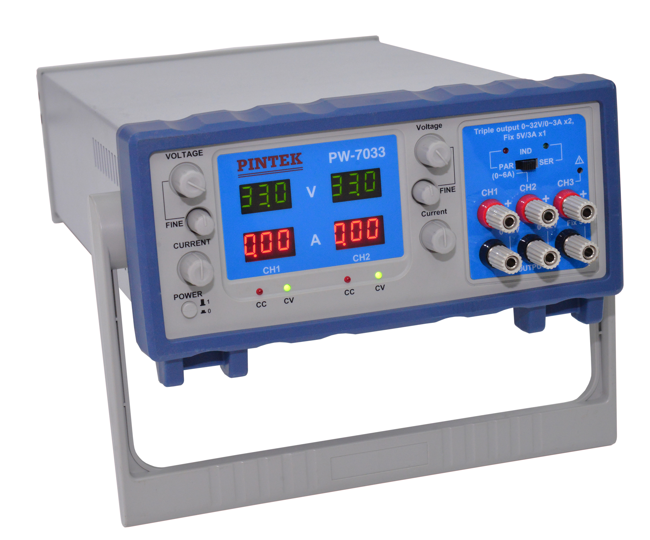 - 3 sets output: 0~32V/0~3A x 2 + 5V/3A