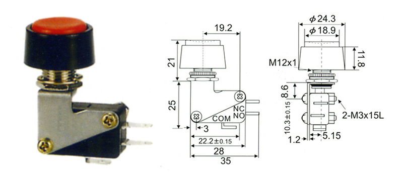 * Type VPS is a push button switches with momentary action using Type V 1A/5A/12A and 15A miniature basic switch inside and has high capacity and a long life.